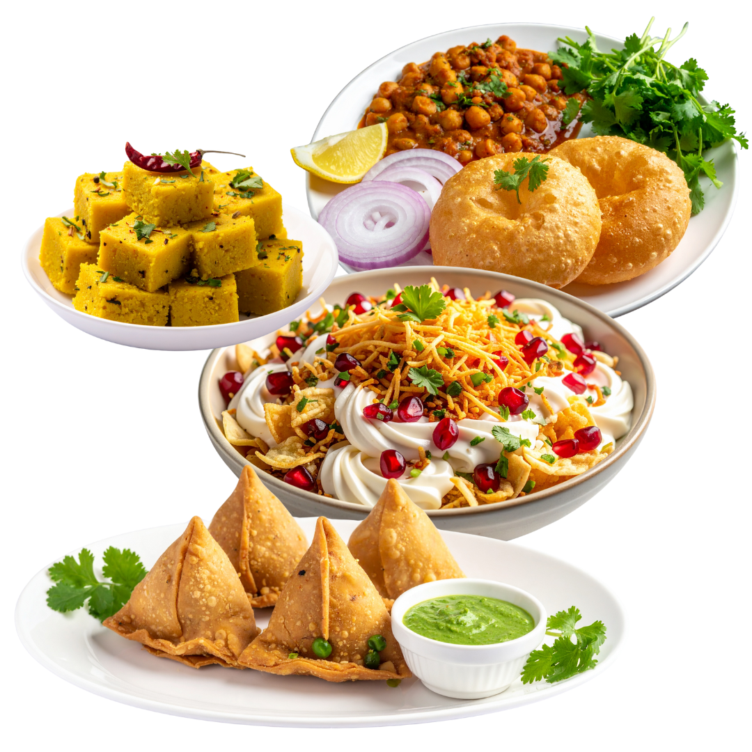 Cold options include spicy or salted puri, all types of chevdo, sev mamra, bhusu, masaka or plain papdi, ganthiya, thepla, all types of sakarpara, salted biscuits, sev khaman, fafda, jalebi, and all egg items. Hot options include corn chevda, sev khamani, sev khaman, papdi loat, wagaralo rotlo, poha batata, upma, locho, sev ushal, pav bataka, puri bhaji, and ponk chevdo.